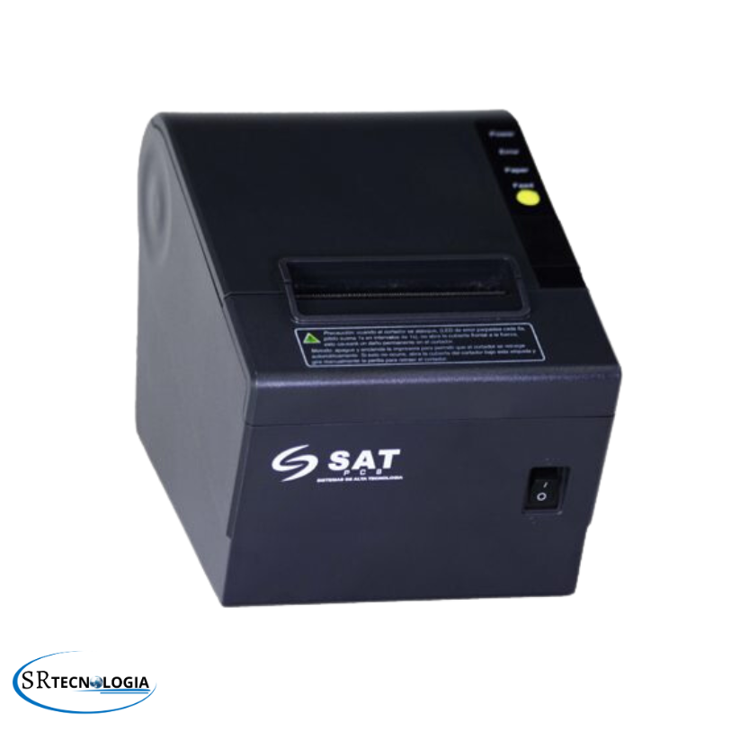 Impresora térmica SAT 38T para punto de venta, impresora para alto trafico velocidad de impresión hasta 300mm/s, cortador automático metálico de alta durabilidad, interfaces de conexión usb/serial/ethernet (puertos modulares) (1 puerto para cajón monedero), soporta impresión de códigos de barras, imágenes, logos. Ancho de impresión de 58mm o 80mm configurable – incluye fuente de poder y carga inicial. 2 años de garantía.